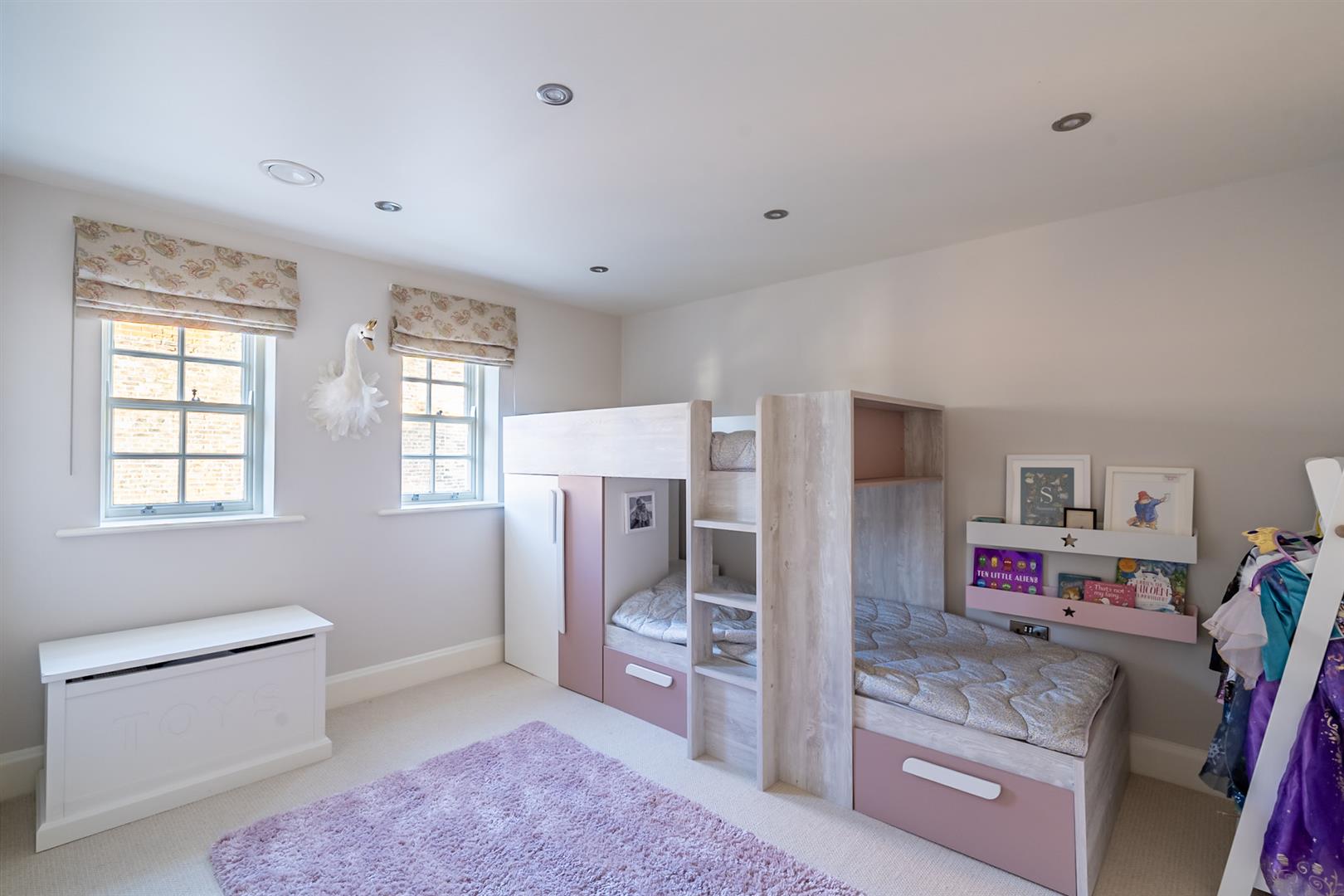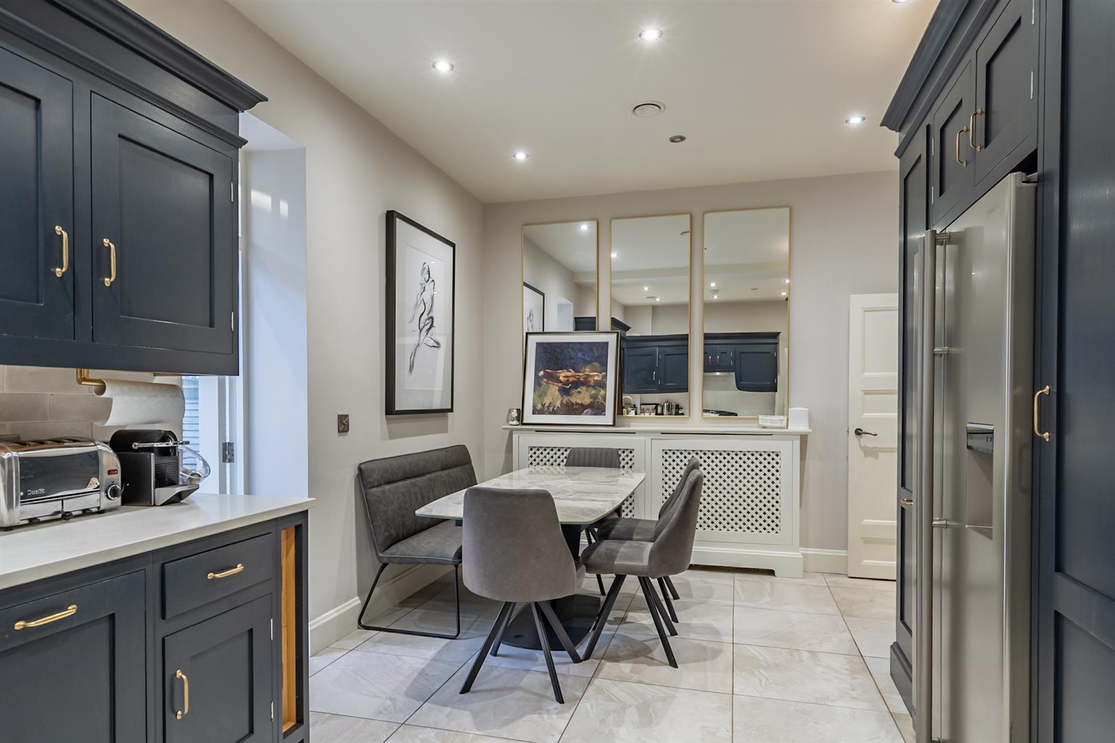 The property has been meticulously upgraded by the current owners with delightful finishing touches throughout. The kitchen is in classic heritage colours with light quartz worksurfaces and features premium integrated appliances and clever storage solutions. This sociable space flows through to a delightful family room with roof lantern and access to a private courtyard garden, ideal for al-fresco entertaining.